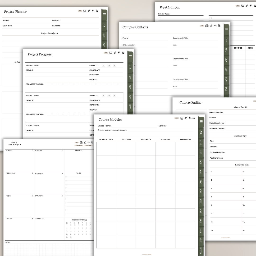 This fully hyperlinked digital planner is compatible with most note taking apps, or if you prefer, you can print the PDF. Start the semester on a high note by organizing and tracking all the course details with reusable templates.