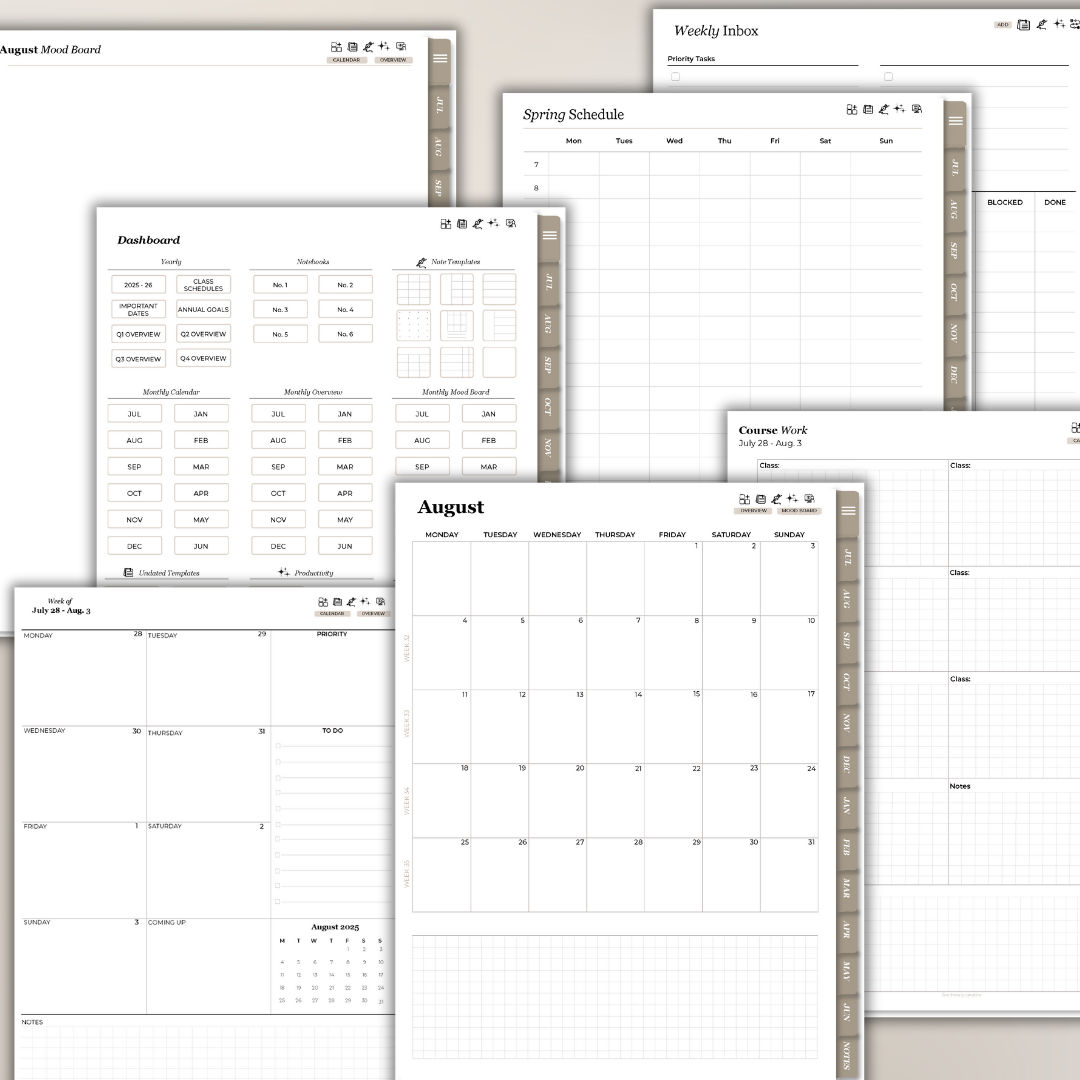 This fully hyperlinked digital planner is compatible with most note taking apps, or if you prefer, you can print the PDF. Set yourself up for a successful semester by organizing and tracking all the course details with reusable templates.