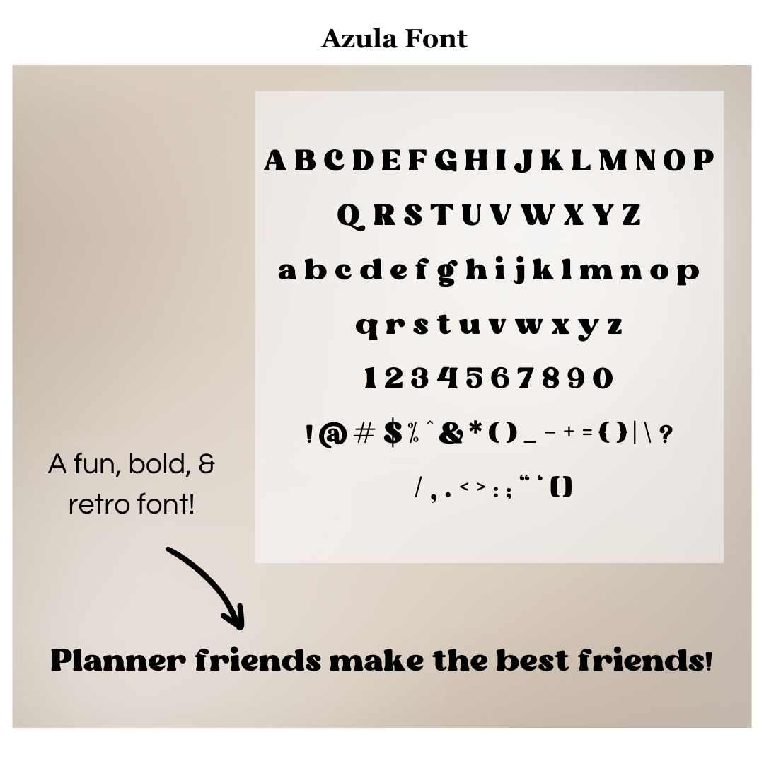 Azula is a fun, bold and retro style font. Great for headings, memory pages and whatever else you can think of!