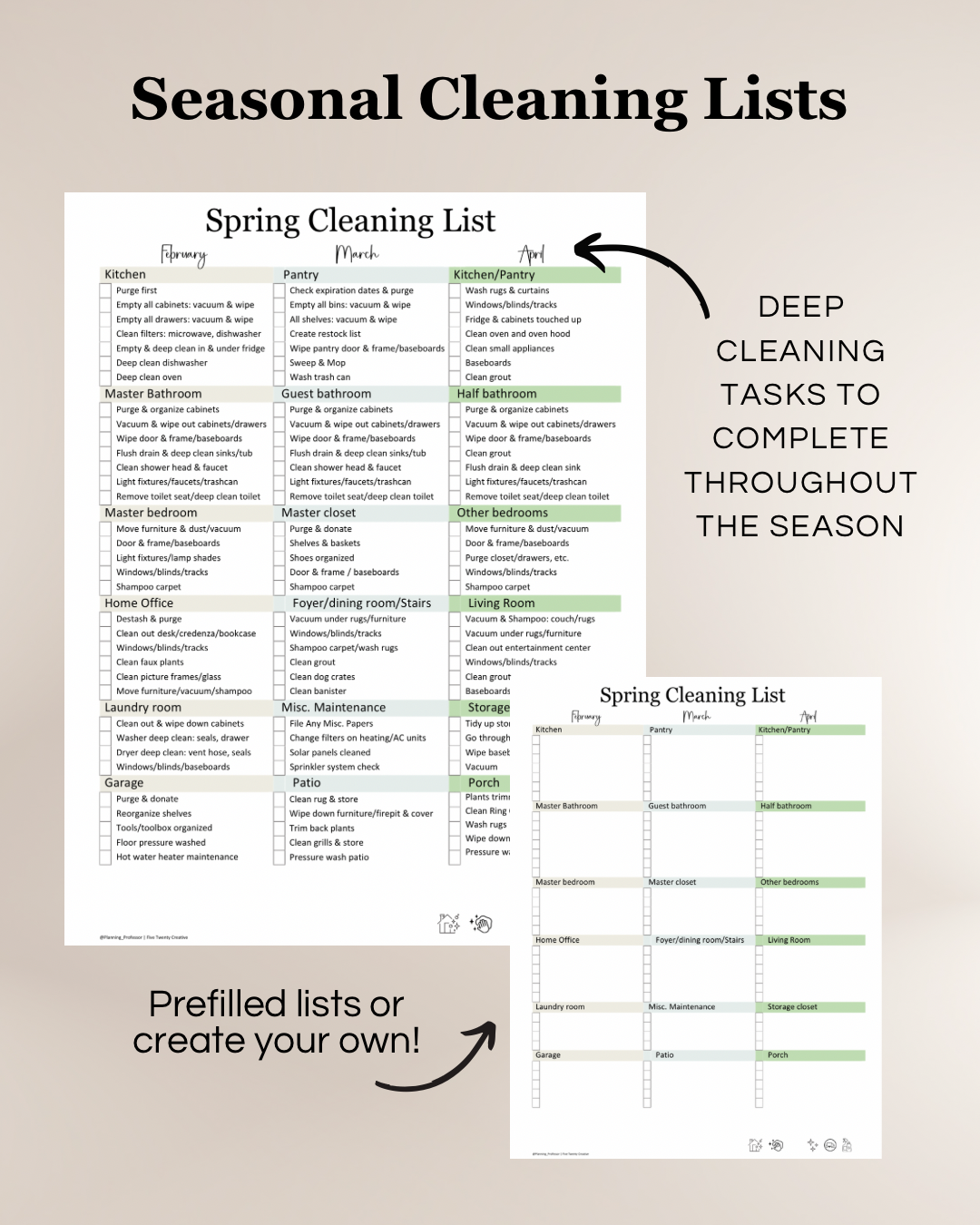 Cleaning lists for routine and seasonal cleaning to help you keep your space so fresh and so clean (clean). 😉